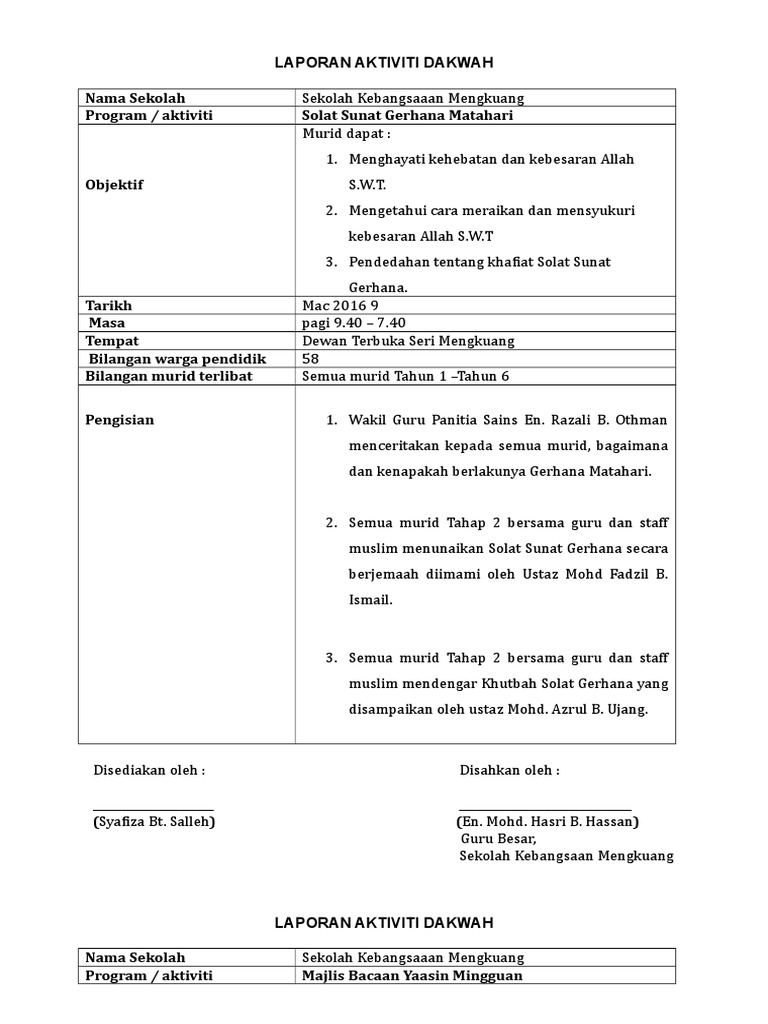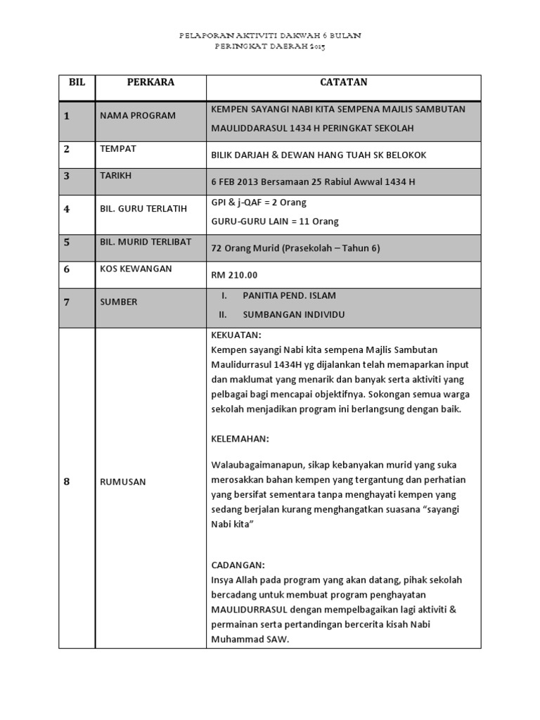 Contoh Laporan Program Sekolah / Saat akan membuat contoh laporan kegiatan anda harus memahami dengan baik bagaimana cara penulisan laporan kegiatanlaporan kegiatan merupakan teks yang berisi mengenai hasil dari suatu kegiatan dan disusun dengan bentuk tertentu.. The copyright of the image is owned by the owner, this website only displays a few snippets of several keywords that are put together in a post summary. Laporan program keseluruhan kumpul dan derma tarikh 10 mei 2014 tempat maahad tahfiz anak yatim darul fuqaha, kajang anjuran persatuan mahasiswa fakulti sains dan teknologi tema green and generous 2. Contoh kertas kerja program kesedaran ts25 kepada warga sekolah pengenalan program transformasi sekolah 2025 (ts25) merupakan sebahagian daripada usaha kementerian pendidikan malaysia ke arah meningkatkan kemenjadian murid dan sekolah berkualiti. Bagi kamu yang ingin membuat laporan kegiatan untuk sekolah, maka bisa mempelajarinya dari contoh di bawah ini: Contoh laporan program sekolah 2017 contoh laporan program motivasi pmr lasopapath laporan hari sukan negara peringkat sekolah sk skarok 2016 nama sekolah sk skarok lubok antu nama program hari sukan negara education paperwork